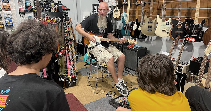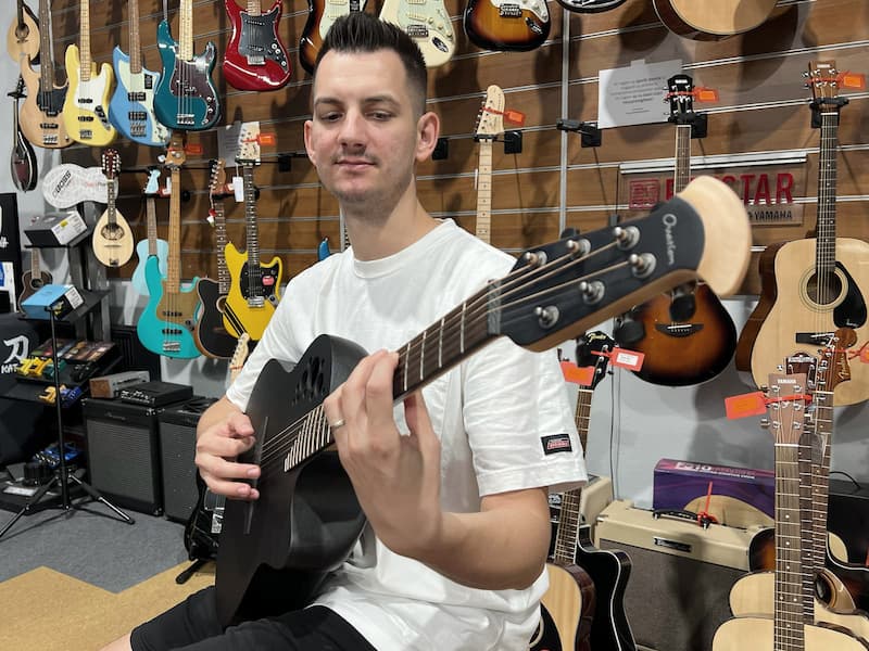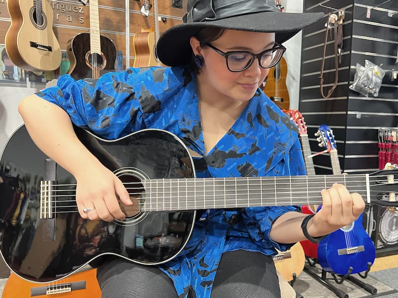 Testarea chitarei este crucială. Încearcă chitare într-unul din magazinele noastre pentru a vedea cum se simt în mâinile tale. Acordați atenție unor factori precum lățimea gâtului, raza plăcii și acțiunea corzilor. O chitară confortabilă va face învățarea și cântatul mai plăcute.