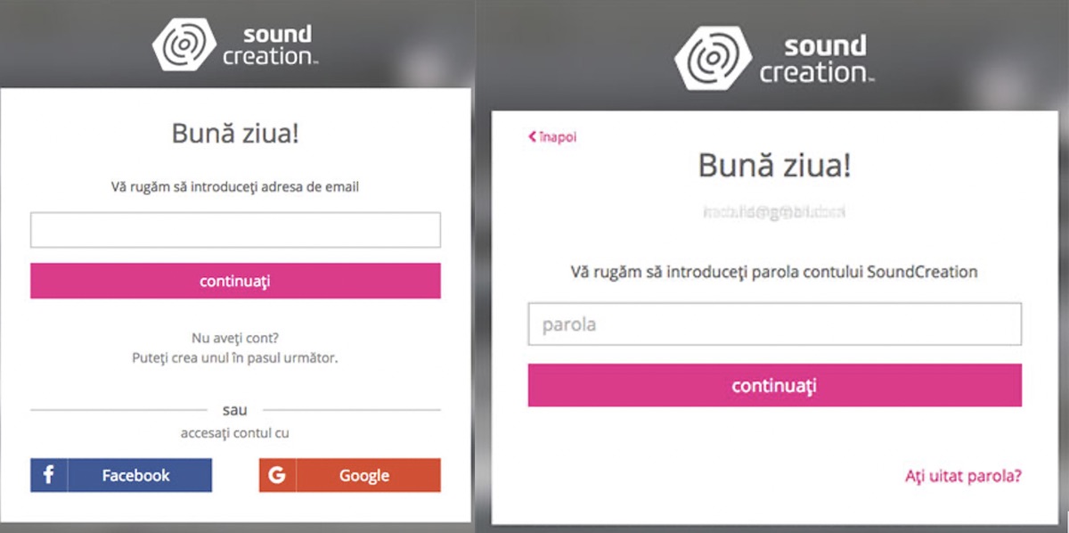 - Autentificare / Cont SoundCreation
